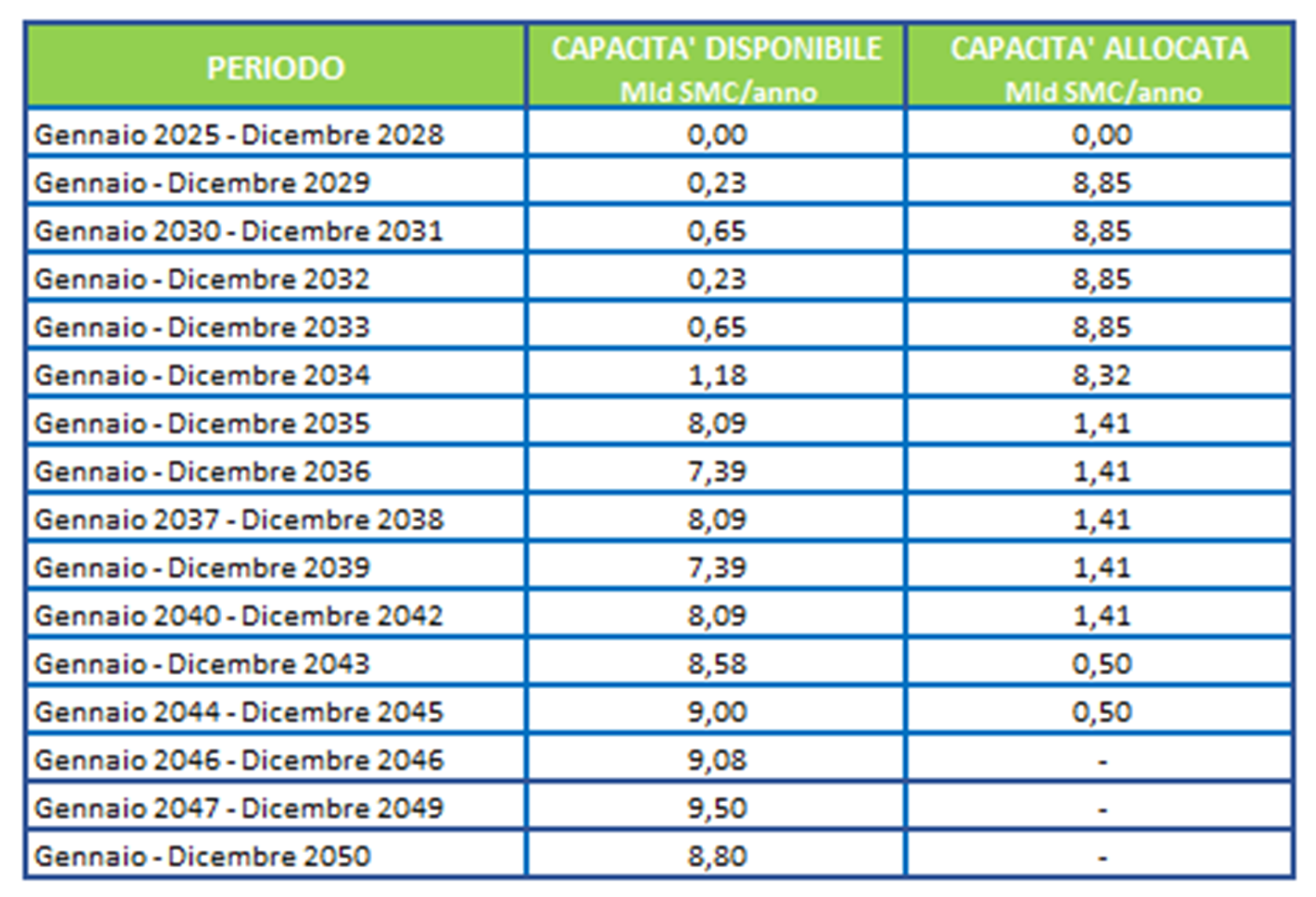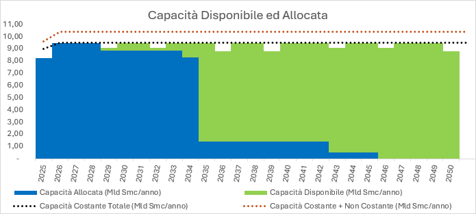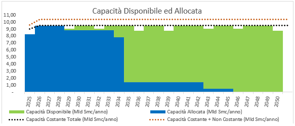 ___________________________________ 31/03/2025 In attesa del lancio della Open Season 2025 si propone di seguito la Capacità Disponibile a partire dal gennaio 2029 considerate le attuali condizioni operative e le informazioni a disposizione.