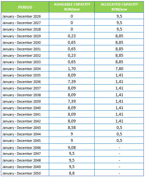 The Open Season 2025 will consist of two phases, a Non-Binding phase for accreditation and a Binding phase for capacity booking during dedicated auctions. The relevant process will be outlined by the end of August.